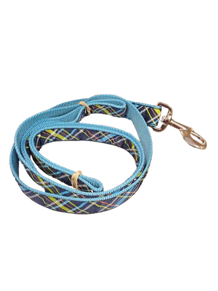 COASTAL RIBBON DOG LEASH 6′ (5/8″) NAVY BLUE PLAID