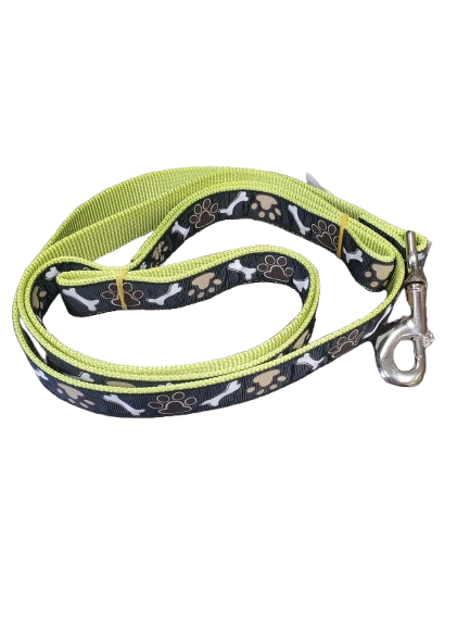 COASTAL RIBBON DOG LEASH 6′ (5/8″) RED WITH PAWS