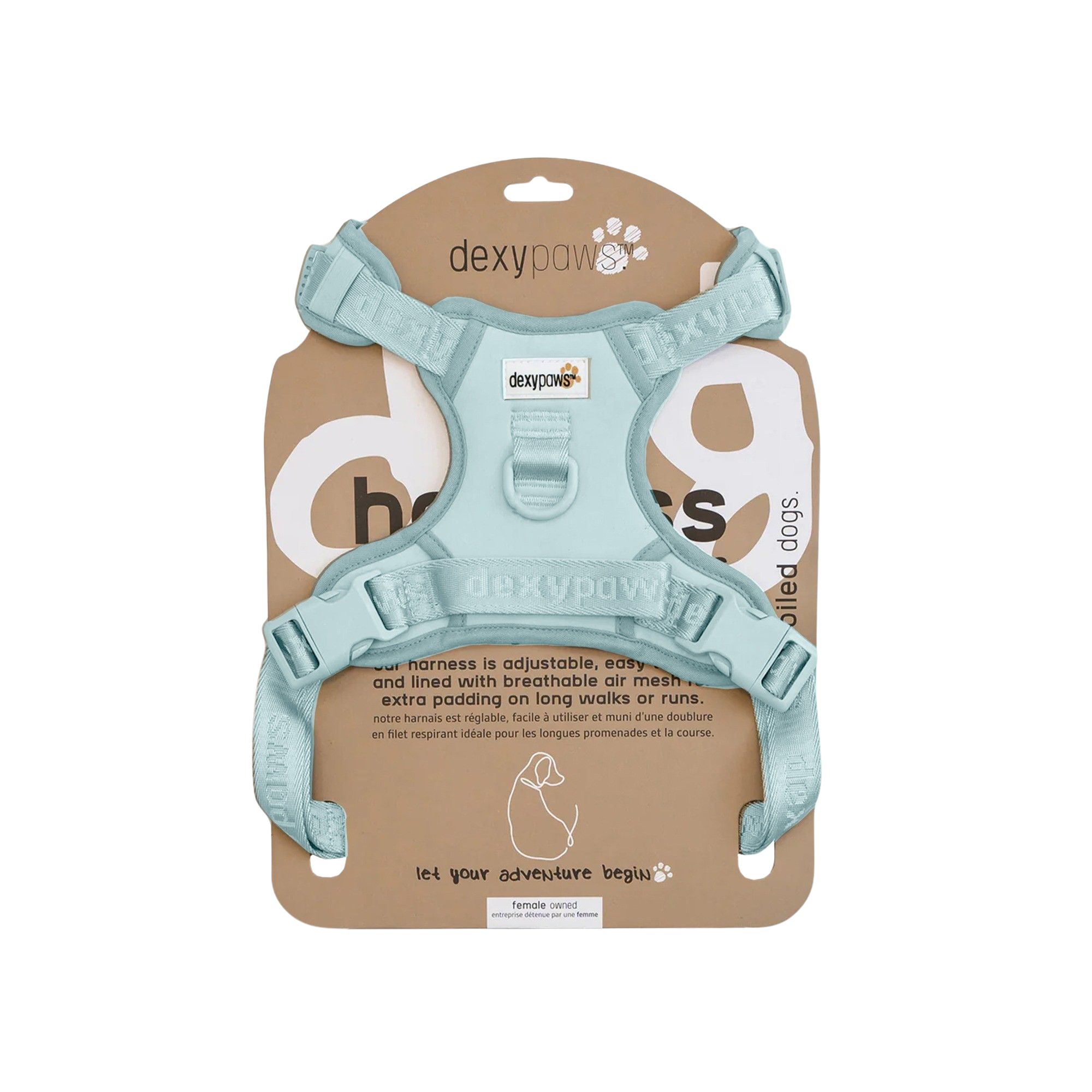 Dexter says: “Introducing our No-Pull dog harness! Our harness has been designed and thoughtfully sourced to withhold the strongest pullers. This harness is adjustable, easy-to-use, and lined with breathable air mesh for extra padding on long walks or runs.”