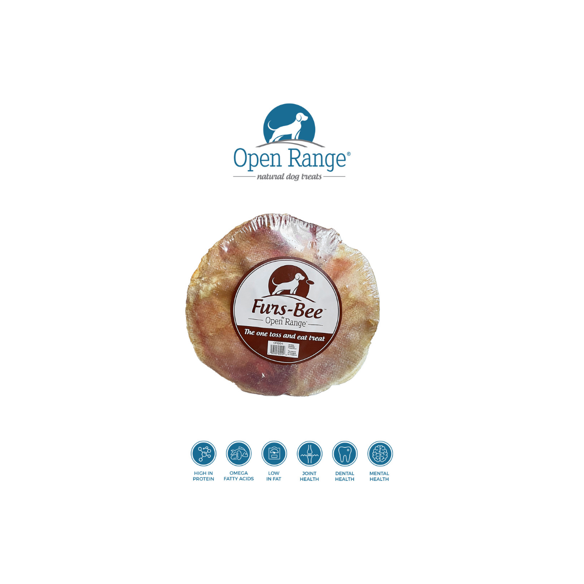 SURE TO RIVAL THE POPULARITY OF OUR FAMOUS FULL LENCTH BULL TAIL, THE FURS-BEE™ BY OPEN RANGE IS THE “ONE TOSS AND EAT TREAT”! Beef bladder is high in protein and low in fat. Commonly used in the human food chain as a sausage casing